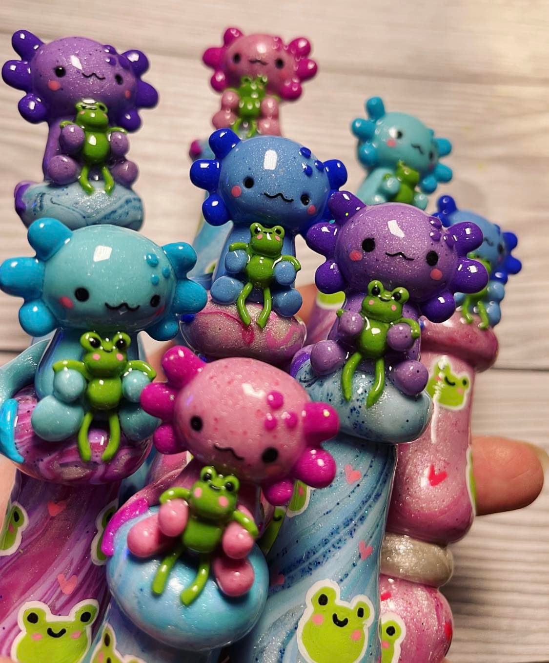 Axolotl Froggy Friends Ready to Ship Ergonomic Crochet Hook